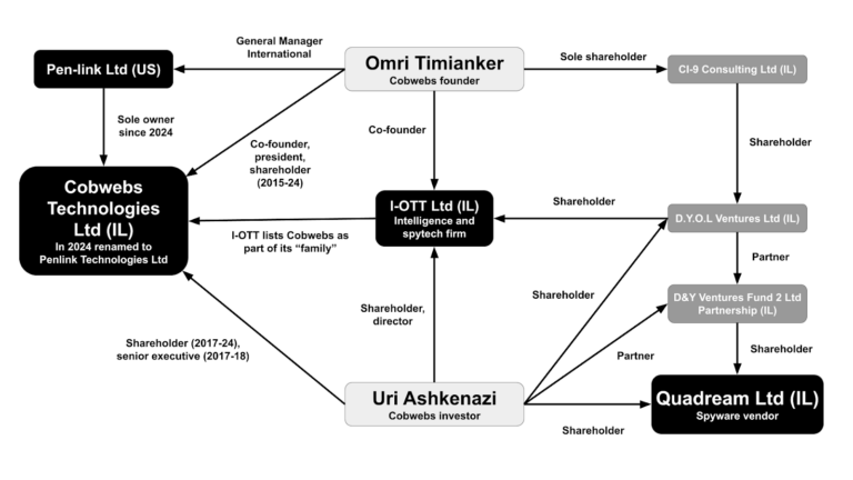 An analysis of corporate records and other public information has revealed that Cobwebs Technologies shares links to Israeli spyware vendor Quadream through Omri Timianker, the founder and former president of Cobwebs Technologies, who now oversees Penlink’s international operations. The company is suspected to have shuttered its operations in 2023.